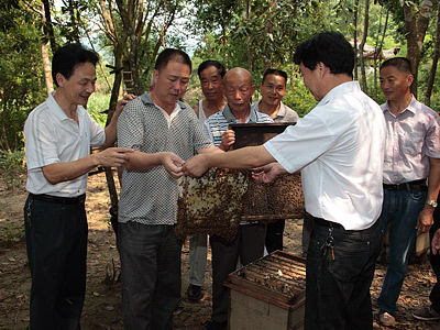市养蜂协会会长陈初潭在会上介绍了建阳市养蜂协会的发展历程:9年来,建阳市的养蜂业经历了蜂箱全面升级改造,挺过了囊状幼虫病对养蜂业的毁灭性打击,目前会员已遍布13个乡镇,共100多人,拥有蜂巢上万箱,年产值达千万元。在全体协会会员的共同努力下,正朝着相互协作,共同发展,不断提升产品档次,努力打造自主品牌的道路上阔步前行。