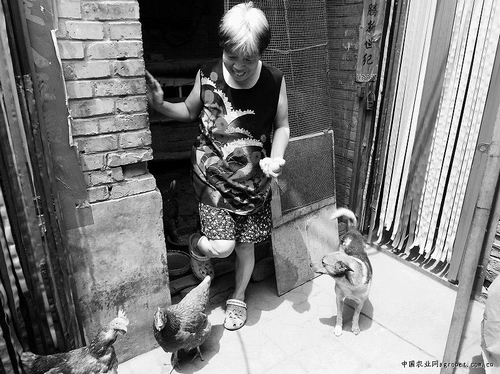 “一开始有12只鸡,都是刚孵出来的小鸡,当时天气还不暖和,我们就用纸箱养在床上。”讲起自家的鸡,周家老太满脸幸福,不光老两口高兴,左邻右舍都过来看,给鸡送剩饭剩菜。鸡第一次产蛋了,她在每颗鸡蛋上注明是哪只鸡哪天产的;天冷了,他们给鸡搭棉门帘,盖塑料布;每天天一亮,老两口总是随着“咕咕咕”的叫声睁开眼;冬天,他们还会赶着鸡去晒太阳,吃沙子;因为主人爱鸡,家中的狗也从来不吓唬鸡。