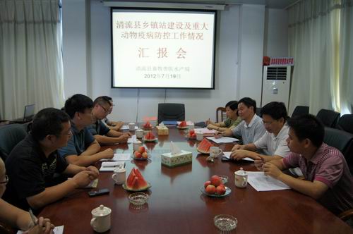 7月19日,福建省农业厅兽医处林福桂处长一行到清流县检查指导乡镇畜牧兽医站建设及重大动物疫病防控工作。