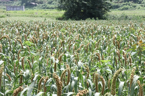 茁壮生长的杂交小米。