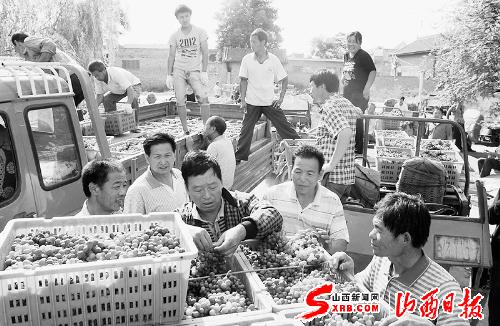 8月23日,夏县禹王乡郭里村村民正在为客商装运玫瑰香葡萄。该乡凭借峨嵋岭地理、气候、水质等自然资源优势,建起万亩玫瑰香、杏花1号、红提优质葡萄基地,产品畅销市场,并与葡萄酒业签了订单,农民获得实惠。