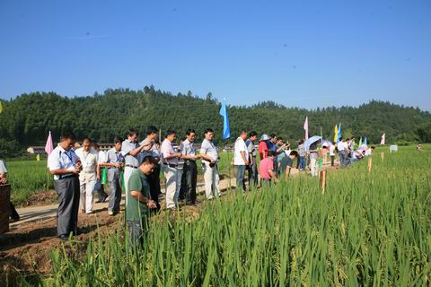 为扩大影响,强化营销,打造品牌,福建科荟种业有限公司于8月27 日至29日在泰宁县召开水稻新品种观摩展示会,特邀中科院生化所、四川农大、福建农科院等单位的专家莅临参观指导。展示的水稻品种(组合)多达100余个,有已审定推广面积较大的3301系列品种,以及正在参试、示范的品种,同时还有表现突出、有苗头的筛选组合120多个。展示区水稻正处抽穗期,田间表现突出、示范效果明显,得到与会专家、销售代表的好评,为泰宁县水稻新品种的更新换代、带动制种基地发展起到了极大促进作用。