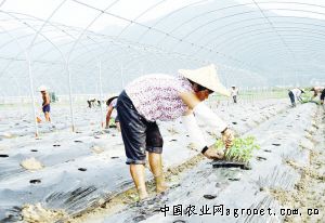 连日来,在云霄县佳洲岛新近竣工的设施农业蔬菜基地,农民们忙着栽种哈密瓜苗。据悉,该基地被列为漳州“十大竞赛”农业竞赛项目。现在基地新建蔬菜钢架大棚1500亩,已建成百亩育种场、500亩哈密瓜种植区。