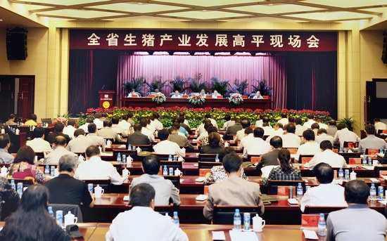 会议明确,全省生猪产业发展要按照“规模、循环、安全”的发展方针,以“一县一业”等生猪养殖大县为载体,以公司制、合作制养殖方式为支撑,以重大项目建设和提升生猪龙头企业为突破,全力构建现代生猪产业体系,努力打造全国优质安全生猪生产基地,努力实现“十二五”末全省生猪规模化养殖比重达到80%以上,加工转化率达到70%以上,年出栏生猪翻番达到2200万头以上的目标。会议决定启动实施“1323”生猪产业化建设工程,重点打造10个生猪大型加工龙头企业,培育30个年出栏生猪50万头以上的养殖大县,建设20个年出栏生猪10万头以上的养殖企业,发展300个年出栏生猪1万头以上的养殖合作社。