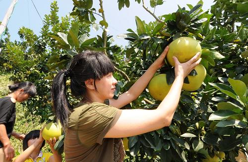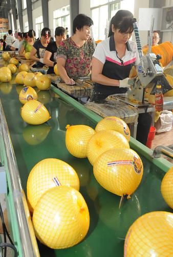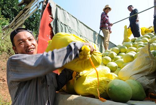 被誉为“中国柚都”的福建省平和县是世界?溪蜜柚之乡,家家户户几乎都种植?溪蜜柚,2011年该县蜜柚种植面积达65万亩,年产120万吨,产值达到28亿元。近年来,该县不断开拓国外蜜柚市场、提升产品深加工质量,促进蜜柚产业持续健康发展。如今,?溪蜜柚这个特色农业已成为该县的支柱产业,成为农民增收致富的源泉。新华社记者 林善传 摄
