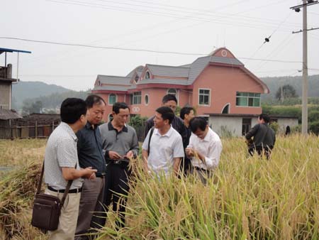 超级稻百亩示范片面积达106亩,测产平均亩产706公斤。品种Y两优7号,实割面积1.02亩,湿谷产量949.72公斤,湿谷亩产931.1公斤,晒干率93%,平均亩产干谷达848.6公斤,这是该县历年超级稻实割测产产量最高的一年。Y两优7号其分蘖力强、植株大、群体整齐、较抗病,最大特点为穗长谷粒多,平均每穗300多粒,可作为该县今后重点关注品种之一。