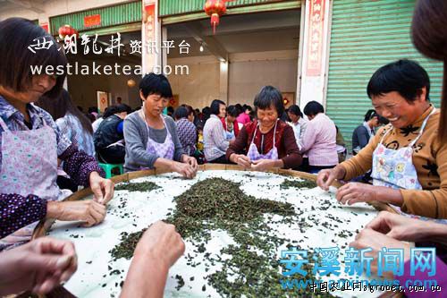 2012年安溪铁观音秋茶全面上市,茶都交易市场、主要产茶乡镇一派繁忙景象,各店门口都坐满了拣茶的女工。中国茶都交易市场数据显示,自9月1日至10月14日,毛茶交易市场茶叶交易量1608.07吨,比去年同期增加1203.96吨,增长175.3%;交易额6522.79万元,比去年同期增加3964.56万元,增长155%,全县秋茶市场销售态势良好。