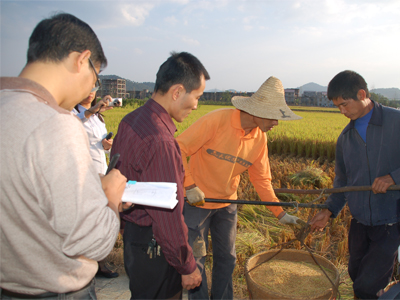 专家组一行随机抽样测产,示范田中稻后山万亩片湿谷亩产756.17公斤,折合干谷632.92公斤;茶布万亩示湿谷亩产747.51公斤,折合干谷617.80公斤。根据测产结果推算,建阳市2万亩中稻高产创建示范田总产量相比上年可增产4%以上,实现了中稻丰收好局面。