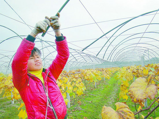 受北方强冷空气南下影响,12月16日起我市气温大幅下降。图为16日下午,宁化县石壁镇千亩葡萄生产观光园的工人在忙着给葡萄园搭建大棚,以确保葡萄藤蔓安全过冬。