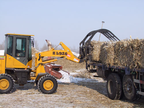 青冈县连丰乡两丰村周家屯农民白林东与明水县长青热电公司签订了收购合同。他们将农民废弃在田里的玉米秸秆进行打包销往这个热电公司用于发电,现在白林东每天雇用20人给玉米秸秆打包、装车,一天可打包玉米秸秆40吨。据白林东介绍,打包玉米秸秆两个月纯利润可达20万元左右。图为12月18日工人正在将打包好的玉米秸秆装车。