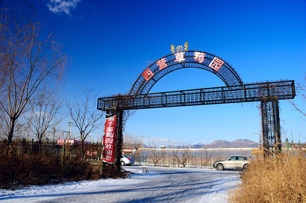2.立汤路往北直行--小汤山(大柳树环岛)往北见四海?花城路标靠右直行见红绿灯--右转昌金路两公里--路北第一个铁牌楼--娟子草莓园