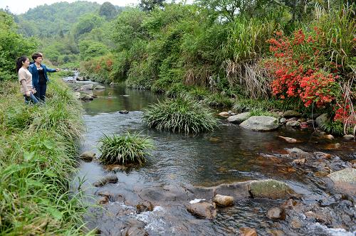 这是福州市纪检监察干部在罗源县霍口畲族乡查看整治畜禽污染后的溪水(4月24日摄)。溪水流域曾是畜禽养殖区。