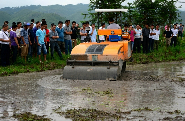 5月30日,福建省邵武市农机管理总站在沿山镇古山村的农田里举行插秧机、旋耕机、大型喷雾机等新型农机具现场作业演示会,300多位农机手和当地村民到现场观看,有的农机手还在技术人员的指导下现场体验新型农机具的操作。南平市农机管理总站有关领导到演示会现场观摩指导。