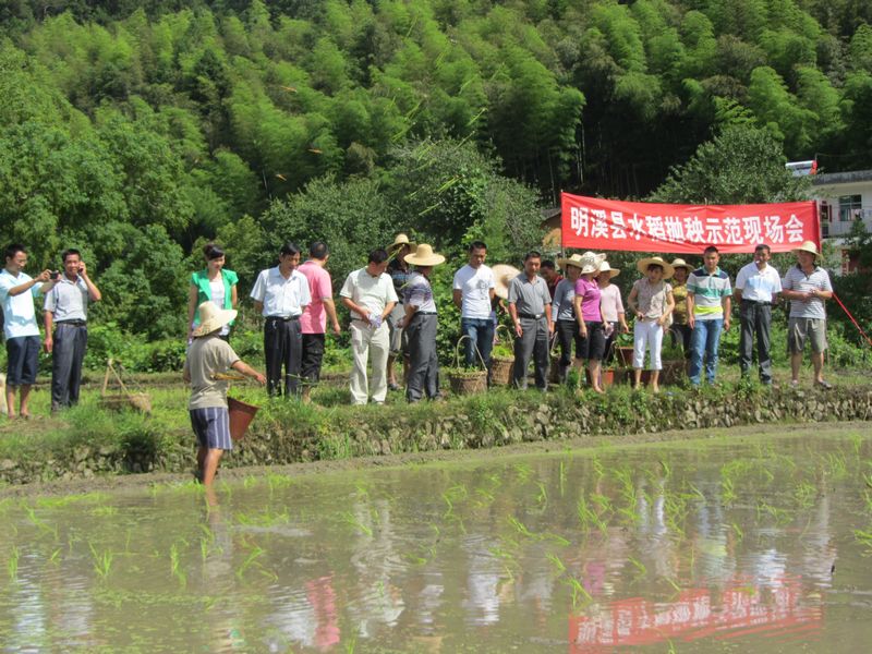 6月24日,明溪县农业局在夏坊乡中溪村召开烟后稻抛秧示范现场会,全县乡镇农技站长、种粮大户代表共36人参加。现场会就抛秧秧苗如何培育、抛栽应注意事项等作了现场示范,大家一致认为这项农业“五新”轻简栽培技术能大大减轻农民劳动强度、提高工效。