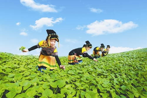 优质苦荞麦新品种成功推广应用,图为彝族姑娘丰收的喜悦。