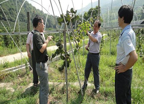 “猕猴桃幼株栽植后要及时搭架以满足生长需要,主干要笔直靠在竹杆上生长,并加以固定,以便将来提高主干支撑力,减轻架子的压力……”专家们在该猕猴桃基地里手把手地指导业主罗正秋时说。专家们仔细观察了去年及今年新种植的红阳猕猴桃新口品种挂果及生长情况后,与果农商讨合理喷药、科学施肥及整枝修剪等方面的问题,并提出当前高温高热天气安全生产的建议。