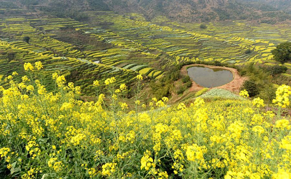 这是3月25日在篁岭梯田拍摄的油菜花。新华社记者 宋振平 摄