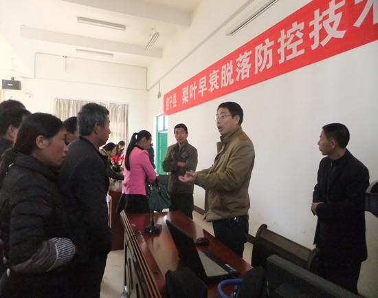 近年来,建宁县翠冠梨出现大面积梨叶早衰脱落现象,严重影响果农创收,梨叶早衰脱落防控与补救技术成为果农急需更新的知识。会上,专家就建宁县梨叶早衰脱落发生概况、发生类型、成因与症状、防控与补救技术措施作了详细讲解,同时与果农进行互动交流,解答果农疑问,取得了很好的培训效果。