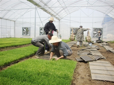 近日,位于龙湾镇龙新村的智能化水稻育秧工厂,技术员正在向农民出售秧盘。4月中旬正是早稻插秧的好时机,武汉跃达水稻全程机械化作业专业合作社投资300万元,在该镇建设智能化水稻育秧工厂。工厂占地面积4。5亩,采用了自动升降太阳网、挡风板和移动喷灌、温湿度自动远程监控、秧盘远距离传输等现代农业技术,一次性可培育稻种2000公斤。新技术不仅缩短了育秧时间,省种省工、节肥节药,而且成苗率高、秧苗均匀整齐。