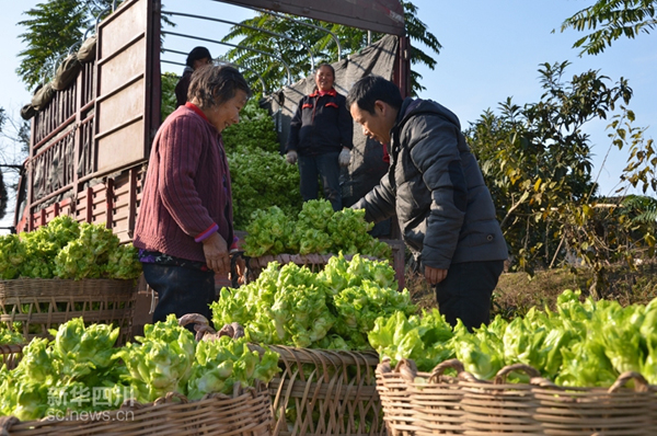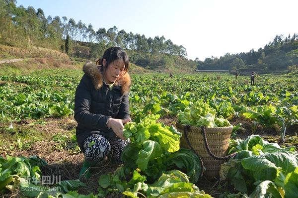 图为石垭镇贫困村陈家沟村200亩蔬菜基地儿菜丰收。 今年以来,岳池县以“产业扶贫,助农增收”为理念,多措并举,推进贫困村产业快速发展,取得了显著成效。