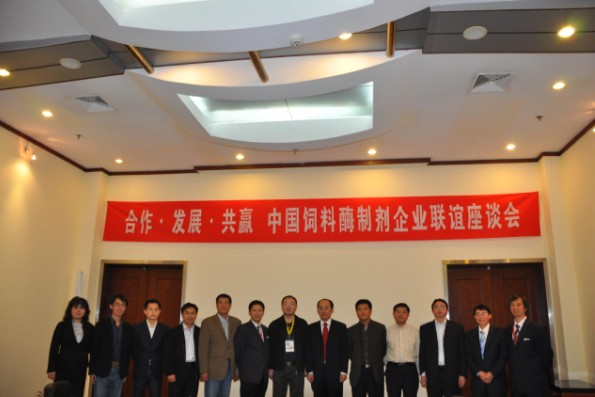 随着饲用酶商业化生产进程的推进,尤其是以植酸酶为代表的单一酶制剂产品成功地实现自主生产后,酶制剂产品开始进入了价格竞争时代,饲用酶制剂的生产企业也感受到了前所未有的压力。但饲料企业却给饲用酶生产企业提出了更高的要求,特别是对复合酶制剂产品在应用效果方面的要求越来越高。饲料生产企业更多关注的是能够降低饲料配方成本,且能给企业带来效益的酶制剂产品,而不是产品的价格。这标志着饲用酶制剂彻底从最初的一个概念性产品向效果产品的一个转变,饲用酶制剂的消费群体也越来越趋于理性与科学,这也预示饲用酶制剂市场真正进入其“黄金季节”。鉴于此,在“首届饲料酶制剂应用技术论坛暨饲料酶制剂大会”举办前夕,大会组委会邀请了主办单位、联办单位、协办单位和承办主要负责人及技术人员于2009年10月17日下午召开主题为“合作?发展?共赢 中国饲料酶制剂企业联谊座谈会”,共同探讨饲用酶制剂的发展。出席会议的嘉宾依次为武汉新华扬生物股份有限公司副总裁吴学军、技术总监张伟;北京昕大洋科技发展有限公司副总裁刘瑞宏;北京英惠尔生物技术有限公司总经理郭庆、企划经理罗佩杰;北京挑战生物技术有限公司总裁谢宁、总经理李学军、企划行政人事总监陈桂林;沈阳华星生物技术有限公司总经理韩国宝;北京金英赛得科技有限公司总经理金贤旭、总经理助理张泽虎;济南天天香总经理郭芳坤;《新饲料》杂志王湘黔社长、王泰伟副社长等共计18人。