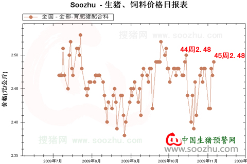 二、 猪配合料/自配料价格走势:2.48元/公斤 平稳