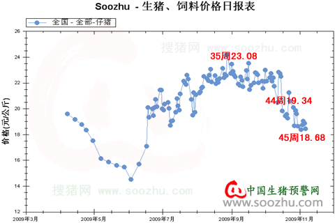 2、仔猪价格:继续大幅下跌 至18.68元/公斤