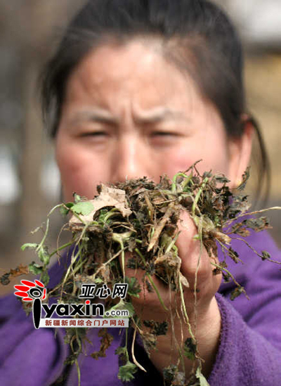 核心提示:看着自家香菜地里已死亡的香菜,李秀萍难受不已。最近,她所在的乌鲁木齐市米东区芦草沟乡人民庄子村14户村民地里种的香菜相继死亡,村民们一年的希望泡了汤。