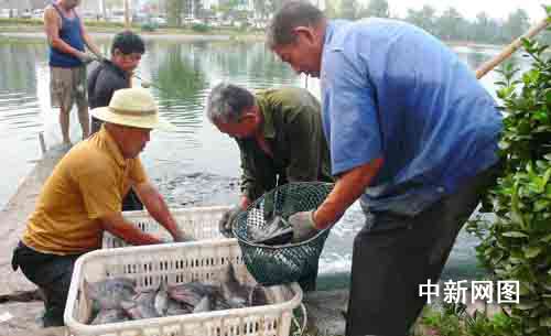 中新网8月8日电(冯文芳)8月8日,侯马市绿苑农业科技示范园温泉养殖区内,工作人员正在捕捞罗非鱼。该示范园利用温泉水养殖罗非鱼,投资小,见效快,养殖周期短,不受季节气候的限制,经济效益高。目前,该园区已养殖罗非鱼20余亩,年获利70余万元。