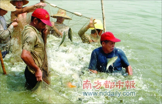 核心提示:养了8年淡水鱼的洪梅镇洪屋涡村养殖户陈先生没想到,去年投放养殖的130亩鱼苗,如今约有20万斤鱼即将收获上市,但鱼市价却一片“惨淡”。草鱼、鳙鱼、鲢鱼和鲮鱼的塘头价(即批发价)分别为9元/公斤、7.2元/公斤、4.3元/公斤和6.2元 /公斤,比7月份下跌了0.3至0.4元/公斤