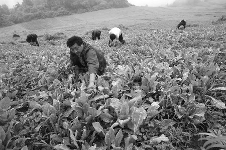 武隆县石桥乡,村民正在板蓝根地里除草。