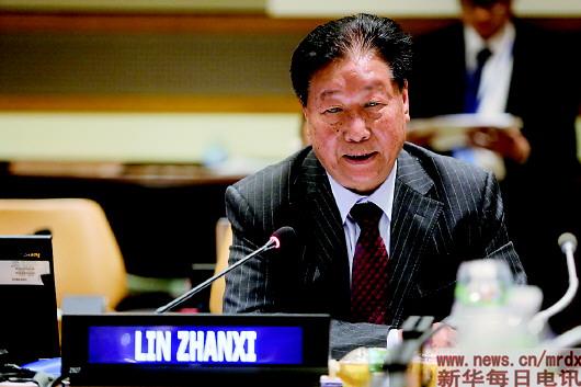 ▲2017年5月26日,中国常驻联合国代表团与联合国经济及社会理事会在联合国总部共同启动中国—联合国和平与发展基金菌草技术项目,并举行首次研讨会,图为“菌草之父”林占熺在会上演讲。