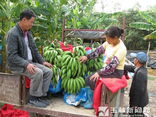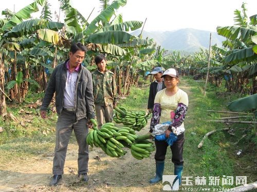 玉李村位于博白县东南部,全村有3000多亩土地,适宜发展香蕉生产,被称为博白“香蕉村”。该村把种植香蕉作为增加农民收入的主要产业来抓,2008年成立了玉李村发展香蕉协会,在协会的带动和支部的引导下,村民由原来零星种植发展扩大到连片种植,并向基地化、规模化、市场化种植发展。香蕉协会还积极推广新品种、新技术,同时积极做好农资以及产品联销、产品销售、信息发布、信息传递等服务。目前,玉李村连片种植香蕉的农民有16 户,种植香蕉280亩,其中深水塘屯蕉农覃甲信连片种植香蕉达150多亩。通过科学种植,精心护理,全村香蕉长势良好,今年收入可达300多万元。其中,该村榄根坡屯蕉农覃官真今年种植香蕉20多亩,收入达30多万元,是玉李村农民增收致富的新亮点。