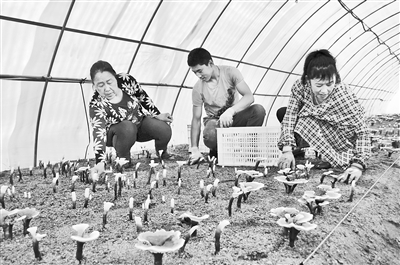 阜平县依托《食用菌产业三年发展规划》,去年以来引进了10家企业投资3.8亿元,建成百亩以上现代食用菌产业园区46个,栽培规模从500亩发展到6300亩,一期6000万只香菇菌棒已全面出菇,带动7500个贫困户户均增收2万元以上,实现当年投产、当年脱贫目标。截至目前,全县累计脱贫8万人,其中食用菌产业带动5.1万农民稳定脱贫,占脱贫人口总量的63.8%。