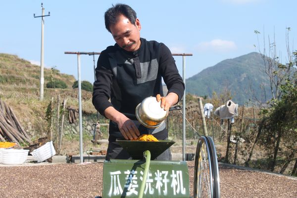 当我问老余为什么会想到种杜瓜时,余松芹说,以前生活困难,2001年到嘉兴打工。后来赚了点钱,就在嘉兴开了个小店,卖起了蛋糕。那时刚好邻居是做瓜子生意的,偶然间听到杜瓜籽非常好卖,而且做杜瓜籽生意的人当时非常少,就动起了种植杜瓜的念头。