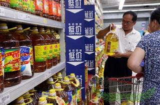 在上海一家大型超市内,顾客在选购食用油。新华社记者:刘颖 摄