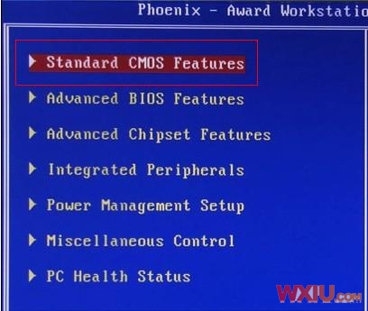 1、重新启动电脑,在未进入系统之前按下“Del”键进入BIOS设置主界面,然后选择“Standard CMOS Features”选项。