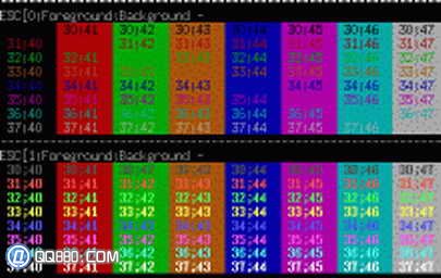 30(黑色)、31(红色)、32(绿色)、 33(黄色)、34(蓝色)、35(洋红)、36(青色)、37(白色)。