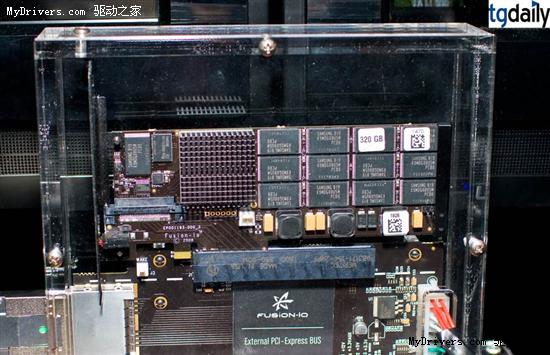 Fusion-io ioXtreme采用PCI-E接口,目前最大容量160GB,数据传输率可达惊人的500-700MB/s,输入输出性能也有50000IPOS,不过其形状与一般常见的固态硬盘不同,看起来更像是一块扩展卡,各种芯片和元件都裸露在外、清晰可见。Fusion-io目前提供的驱动程序仅支持64位操作系统,而且还是测试版,32位版本要再稍等一段时间。