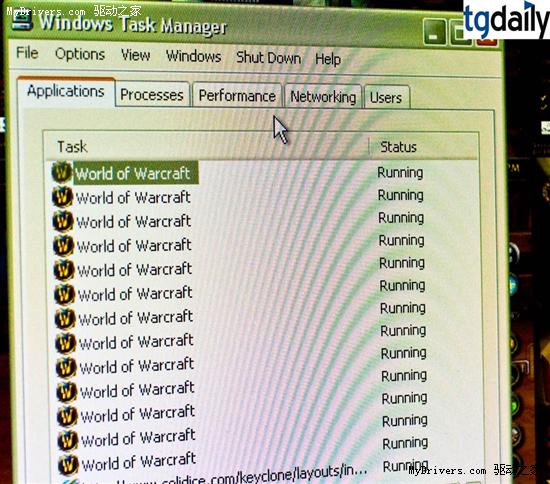 展示机配置了Phenom X4 9850 2.5GHz处理器、4GB内存、GeForce 8800显卡。为了方便多开,这里使用了Keyclone程序,可以向所有游戏窗口发送按键信号,另外还安装了Maximizer插件,去掉所有窗口边框。