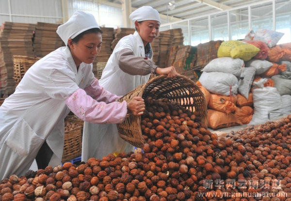 栽培核桃历史逾千年的 “中国核桃之乡”云南省保山市昌宁县,全县种植了110万亩核桃,年干果产量13000吨,产值达到3.62亿元。目前,当地农民自发成立核桃专业合作社 21个,种核桃的专业户每年种植、加工、出售核桃的收入超过了一万元。 新华社记者 陈海宁摄