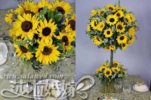 3、向日葵组合成一个球体,朵朵新鲜绽放。