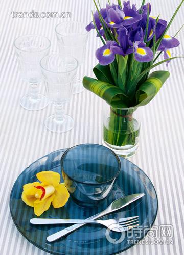 3.比起高大粗犷的德国鸢尾来,荷兰鸢尾更加玲珑精致;它有着三位一体的优雅花朵、纤细的叶片,是餐桌花艺中经常使用的花材。蓝紫色调是它的经典色彩,很容易营造出清新雅致的效果。