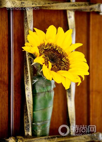 9.单枝的葵花效果一点也不差,当然,这更要归功于包裹着它的巴西铁花器。这是非常典型的“红花还需绿叶配”,虽然直白,但是真理。