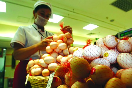 5日,在崂山区丽达购物中心,销售人员正在整理散装鸡蛋。据了解,因为饲料涨价,鸡的数量减少等原因,我省部分城市鸡蛋价格上涨,记者走访了几家大型超市发现,岛城鸡蛋价格平稳,并没有出现一天一个价的现象。本报记者盛文静摄
