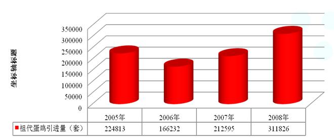 2007年全国共有18家企业先后从国外引进祖代蛋种鸡23.787万套,2006年引进祖代蛋种鸡20.57万套,净增加3.217万套,增长率为15.6%。