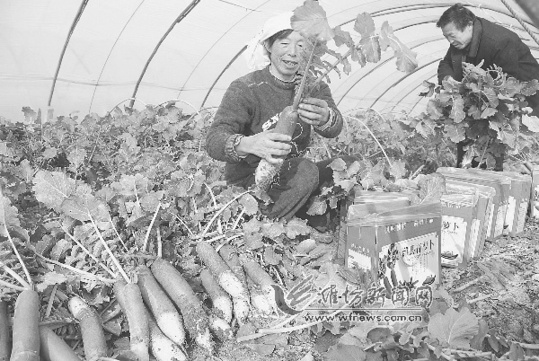11月30日,寒亭区固堤街道农民刚刚收获的瓜茬萝卜,就被客商订购下来装箱外运。该地素有“西瓜之乡”的美称,西瓜收市后在瓜茬种植的萝卜具有肉质翠绿、汁多清脆、微辣脆甜等特点。据了解,寒亭区秉承“打造品牌农业,夯实农业根基”的目标要求,大力发展都市农业,取得良好成效。光固堤街道萝卜种植面积就发展到5000余亩,可为当地农民带来3000余万元收入。