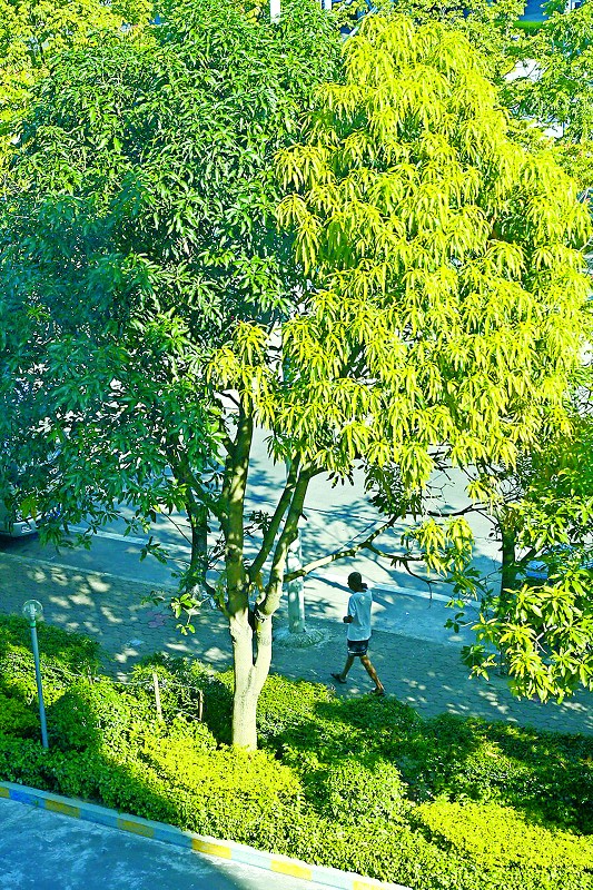 本报讯(记者梁翠华)近日,有市民发现,翠香路靠近海边处的绿化带上,有一棵奇异的芒果树,树叶深浅不一且均匀对称。