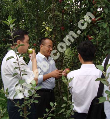 陕西省果业局王振兴局长、周智孝副局长等一行前来润太公司考察润太一号柱状苹果品种