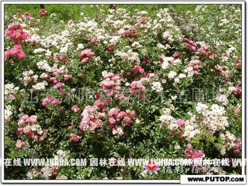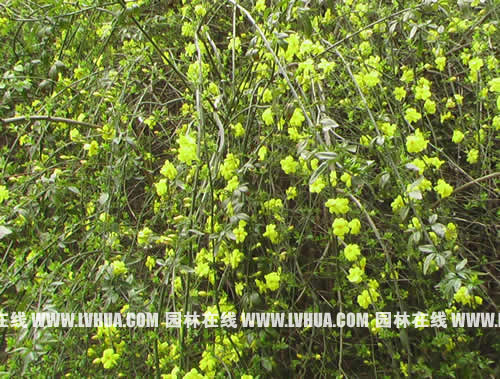 现在上海高架道路的桥面绿化选用黄馨、粉团蔷薇、日本无刺蔷薇三种植物作为高架道路垂直绿化的首选品种, 它们既是四季常青, 又能开出黄花、粉红色花、白花, 将高架道路妆点成色彩缤纷的空中花境。